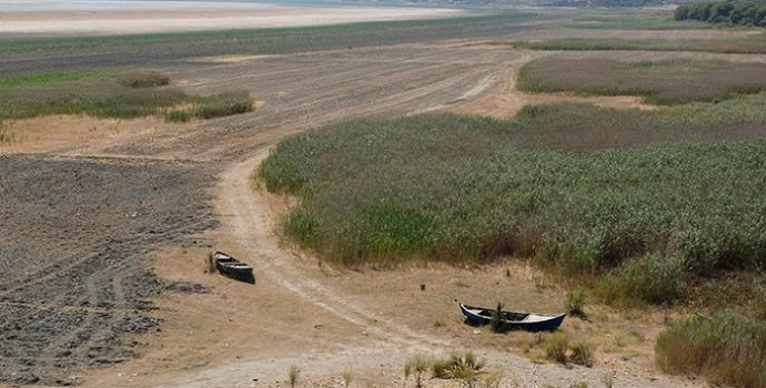 Manisa’daki Marmara Gölü, tamamen kurudu. Gölün kuruma nedeni göle akması gereken Gördes Çayı suyunun barajda tutulması.