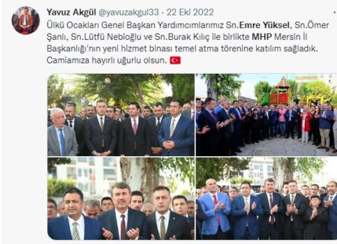 MHP, ‘Özel Kalem’ iddialarını reddederken, Emre Yüksel’in sosyal medya profilinde ‘Ülkü Ocakları Genel Başkan Yardımcısıı’ ifadesinin yer aldığı görüldü. Öte yandan Yüksel’in Mersin Ülkü Ocakları’nı da bu unvanla ziyaret ettiği öğrenildi. MHP’nin ‘böyle bir çalışanımız yoktur” dediği Yüksel’in, Ülkü Ocakları’nın çok sayıda il ve ilçe teşkilatını ziyaret ettiği görüldü.