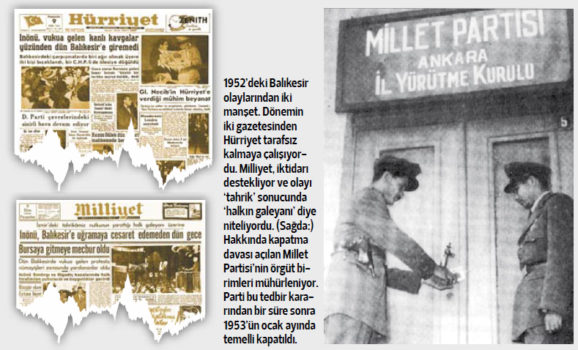 Millet Partisi Üçüncü Sulh Ceza Mahkemesi tarafından 27 Ocak 1954’te kapatılmasına karar verir. Kapatılma kararı söyledir (Pancaroğlu, 2006:52-53):
