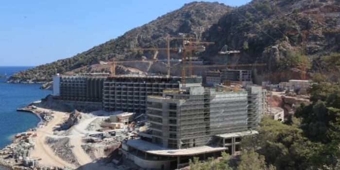 Marmaris Kızılbük’te mühürlenmesine rağmen Sinpaş GYO tarafından yapımına kaçak bir şekilde devam edilen otel ve devremülk şantiyesinde iş kazası yaşandı.