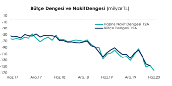 Faiz giderleri bir önceki aya göre 2.79 milyar TL azalırken, faiz dışı giderler 6.96 milyar TL artış kaydetti, gelirler ise bir önceki aya göre 13.68 milyar TL azaldı. Yıllık olarak baktığımızda ise faiz giderlerinin Haziran’da geçtiğimiz yılın aynı ayına göre 22.52 milyar TL arttığını, faiz dışı giderlerdeki artışın ise 144.04 milyar TL olduğunu görmekteyiz. Gelirlerin ise aynı dönemde 114.64 milyar TL ile faiz ve faiz dışı giderlerin gerisinde kalması nakit dengedeki bozulmada belirleyici faktör oldu.