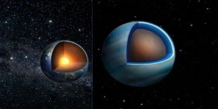 Dünya’dan biraz daha büyük olmalarına rağmen kaya yoğunluğuna sahip değiller. Yine de, Güneşimizin etrafında dönen gaz devi dış gezegenlerden daha yoğundurlar. Peki, neyden yapılmışlardır? En iyi yanıt, bu dış gezegenlerin Dünya okyanuslarının ortalama derinliğinden en az 500 kat daha derin küresel okyanuslara sahip oldukları ve bunların kayalık bir topun üzerindeki ıslak bir kaplama olduğudur.