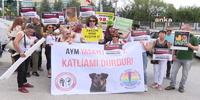 Sokaktayım Yanındayım İnisiyatifi ve Hayvan Yaşam Özgürlük İnisiyatifi, sokak hayvanları düzenlemesinin iptali için Anayasa Mahkemesi (AYM) önünde bir basın açıklaması yaptı. Yaşam hakkı savunucuları, düzenlemenin şiddet ve kutuplaşmayı artırdığını belirterek AYM’ye, “Bu kandan başka bir şey vermeyen kanun geri çekilsin. AYM, zaman kaybetmeden bu katliam yasasını iptal etsin,” çağrısında bulundu. AYM önünde toplanan yaşam hakkı savunucuları, Meclis’te kabul edilen sokak hayvanları düzenlemesinin iptalini talep etti.