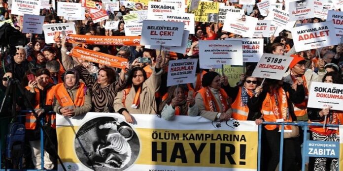 Türkiye’nin farklı şehirlerinden binlerce kişi, İstanbul’daki Yenikapı Marmaray Durağı’nda toplandı. “Yasayı geri çek” sloganları eşliğinde kortejler halinde miting alanına yürüyen kitle, üzerinde “Bu dünya hepimizin, katliama dur de”, “Sokakları değil, içinizdeki kötülükleri temizleyin”, “Kısırlaştır, aşılat, yaşat” gibi sloganlar bulunan afişler taşıdı. “AKP yasayı al başına çal”, “Susma haykır katliama hayır” şeklinde sloganlar atan yaşam hakkı savunucuları, yasayı geri çekilmesi gerektiğini belirtti.