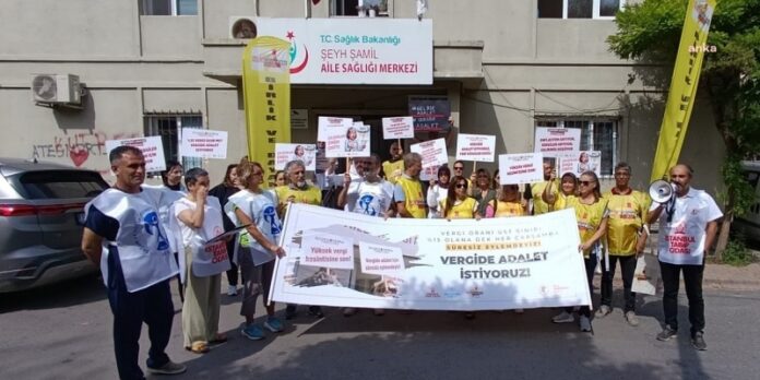Sağlık meslek örgütleri, Türkiye’deki sağlık çalışanlarının uzun süredir beklediği “vergide adalet” talebiyle eylemlerine devam ediyor. 28. haftasına ulaşan bu eylemler, İstanbul Şeyh Şamil Aile Sağlığı Merkezi önünde gerçekleştirildi. Birlik Dayanışma Sendikası 1 No’lu Şube Başkanı Ahmet Tabduk Mehlepçi, “Yılın 5 ayı gelir vergisine çalışmaktan yorulduk. Ekonomik krizin sorumlusu biz değiliz, ama bedelini biz ödüyoruz” diyerek durumu özetledi.
