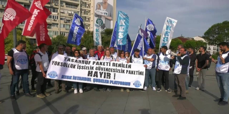 Kamu Emekçileri Sendikası Konfederasyonu (KESK), hükümetin kamuda tasarruf paketini protesto etmek için Şişli’de bir basın açıklaması gerçekleştirdi. İstanbul KESK Şubeler Platformu adına konuşan Eğitim Sen 3 No’lu Şube Başkanı Hüseyin Poso, hükümetin tasarruf politikalarına yönelik sert eleştirilerde bulundu.