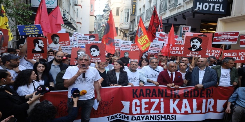 Halkların Eşitlik ve Demokrasi Partisi (DEM Parti) Eş Genel Başkanı Tülay Hatimoğulları, siyasi parti milletvekilleri, Berkin Elvan’ın annesi Gülsüm Elvan ve birçok kitle örgütü temsilcisinin destek verdiği açıklamada, “Karanlık gider Gezi kalır”, “Biz Geziciyiz, siz gidici”, “Gezi için adalet”, “Geziyi savunmak memleketi savunmaktır” yazılı dövizler taşındı. Ayrıca, Gezi direnişinde hayatını kaybedenlerin fotoğraflarının yer aldığı büyük bir pankart da açıldı.