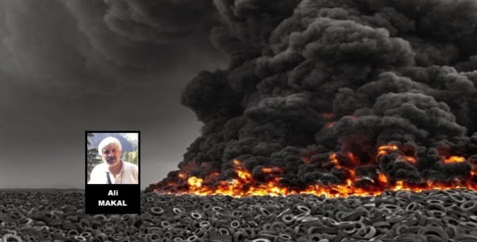 Devamında şunlara işaret ediliyor: “Yakma metodunun yararları yanında bir takım dezavantajları da vardır. Yakma işlemi sırasında atmosfere tonlarca zararlı bileşikler yayılmaktadır. Siyah bir bulut gibi atmosfere yayılan bu maddeler içinde; karbon siyahı, uçucu organikler, yarı-uçucu organikler, çok halkalı hidrokarbonlar, yağlar, kükürt oksitleri, azot oksitleri, nitrosaminler (kanserojen bir bileşen), karbon oksitleri, uçucu partiküller ve As, Cd, Cr, Pb, Zn, Fe vb. metaller bulunabilmektedir. Yangınlar ile atmosfere yayılan bu kirleticiler, yakın çevredeki toprak ve suların kirlenmesine sebep olarak insan sağlığını tehdit etmektedir.(2)” Açıkça görülüyor ki, atık lastikler yakılarak bizi bu yolla da zehirlemektedirler. OSB ve Termik Santrallerde lastik kullanılarak enerji üretimi yapan tüm işletmeler havaya daha tehlikeli gazlar bırakarak doğayı daha fazla tahrip etmektedirler. Açığa çıkan karbon emisyonu ile de havada SERA oluşumunu hızlandırmaktadır. Temiz Hava Hakkı için bu tür zararlı uygulamalardan vazgeçilmelidir. Sosyal Devlet Vatandaşının Temiz Hava Hakkını korumak zorundadır. Zehirsiz Hava Solumak İstiyoruz…Temiz Hava Hakkımızdır…