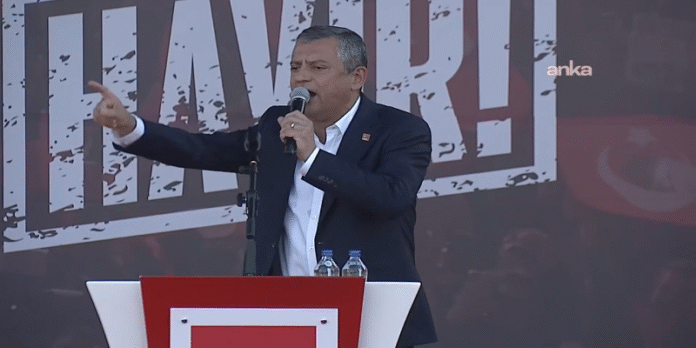 Erdoğan’ın seçimlerde yenilgiyi kabul etmek yerine hukuku devreye sokarak iktidarını sürdürmeye çalıştığını belirten Özel, “Millete umut vaat edemeyen iktidar, korkutarak ve baskı altına alarak ayakta kalmayı denemektedir” ifadelerini kullandı.