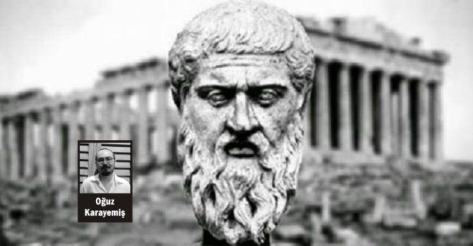 Antik Yunan felsefesi, demokratik sitenin içine doğmuştur. Özellikle Sokrates-sonrasından başlayarak felsefe, aynı zamanda bir siyaset felsefesi olarak da kendini sunmuştur. Bilhassa vurgulu demokrasi nefreti ve geliştirdiği idealist ontoloji ile Platon dahi, nihayetinde ontolojisini siyaset için bir “ölçütler manzumesi belirleme” niyetiyle sunmaktadır.[13]