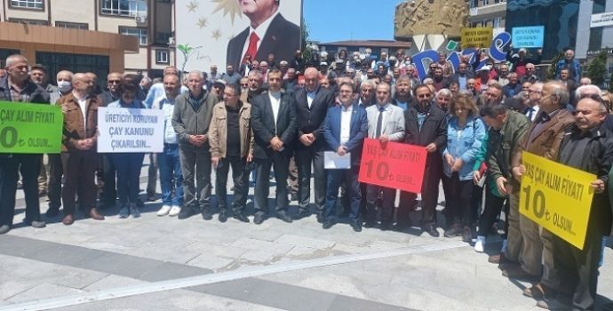 CHP Rize İl Başkanlığı, çay üreticileri ile birlikte; çay gübresine yapılan zammı ve çay alım politikalarını, Cumhuriyet Meydanı’nda protesto etti. Protestoya, çay meclisleri üyeleri ve sivil toplum kuruluşu temsilcileri de katıldı. Çay üreticileri eylemde, üzerinde “Üreticiyi koruyan Çay Kanunu çıkarılsın”, “Yaş çay alım fiyatı 10 TL olsun” ifadelerinin yazılı olduğu pankartlar taşıdı. Üreticiler, “Çayda kanun yasalaşsın” sloganı attı.