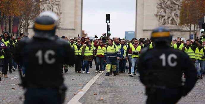 Resmi açıklamalara göre, sarı yelekliler isyanında, 17 Kasım 2018’den beri 10 kişi hayatını kaybetti, 2 bin kişi yaralandı. Geçtiğimiz hafta Cumhurbaşkanı Emmanuel Macron, bu eylemlerde ölenlerin polis tarafından öldürülmediğini iddia etti. Macron’a göre polisin hiçbir suçu yok. Zaten Macron hükümeti, bu eylemlerde görev alan polislere prim parası vererek desteğini esirgemiyor. Macron, kitleye şiddet uygulayan polisinin arkasında duruyor. Ee talimat kimden. Emri veren arkasında duruyor özetle. Macron, üst perdeden konuşmaya devam ediyor.
