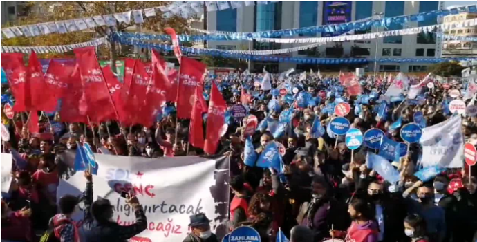 SOL Parti, “Devrimci Demokratik Cumhuriyet” çağrısıyla başlattıkları mitinglerin sonuncusunu İstanbul’da yaptı. SOL Parti Başkanlar Kurulu üyesi Önder İşleyen “Ülke büyük bir çöküşte. Her gün gıdaya akaryakıta yaptıkları zam burada. Açlık kıtlık burada. 21. yüzyılda bu ülkeye açlığın yokluğun evsizliğin ne olduğunu gösterdi bunlar. Bu ülkenin başına bir dakika daha durmamaları gerek. Buradan sesleniyoruz. Ey Erdoğan istifa et” dedi.
