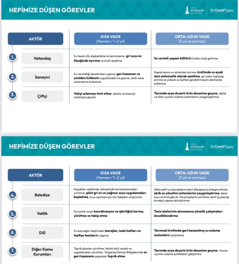 - NHY / Evrim Rızvanoğlu’nun X (Twitter) paylaşımı; Dr. Cemil Tugay’ın Su Konferansı sunumu; Birleşmiş Milletler ve Dünya Bankası su stresi ve iklim raporları.