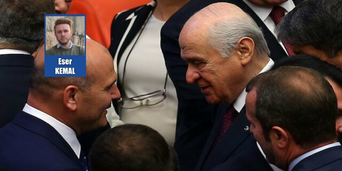 Mhp ise, gelenek itibari ile radikal milliyetçiliği her daim kodlarında bulundurmuş bir siyasi hareket. İktidarda olmadığı günlerde söylediği mini demokrasi sözcükleri, muhalefet konforuna yazılan ucuz artılar olmasından başka bir tahtaya yazılması doğru değil. Zira iktidara geldikten sonra, yönetim kabiliyetini kendi periferisinde tutma çabası, onun da olduğundan daha büyük sözlerle radikalizmini ortaya koymasını gerektiriyor ki bu Mhp geleneği için herhangi bir sorun teşkil etmiyor.