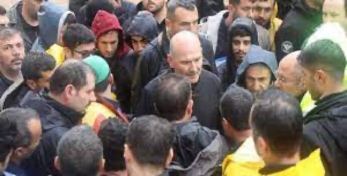 Soylu ile konuşmaya çalışan afetzedeler, korumalar tarafından engellendi. Soylu, kendisine seslenen bir yurttaşa “Bağırma” diyerek yanıt verdi. Protesto sırasında ‘yuh’ sesleri de duyuldu.