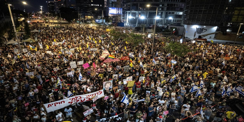 İsrail’in Gazze’ye yönelik saldırılarını durdurmaması ve esir takası anlaşmasına yanaşmaması, Başbakan Benyamin Netanyahu hükümetine karşı bir kez daha halkı sokaklara döktü. Tel Aviv’de binlerce kişi, hem Gazze’de ateşkes sağlanması hem de Hamas’ın elindeki İsrailli esirlerin serbest bırakılması için kapsamlı bir anlaşma yapılması talebiyle protesto düzenledi.