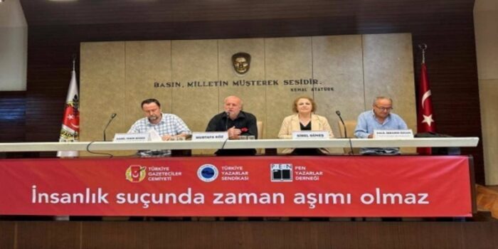 TGC, TYS ve PEN olarak Sivas Katliamı davasında zamanaşımı kararının iptal edilmesini talep ettiklerini belirten Oral, “Bu dava yeniden açılmalı ve katiller yargılanmalıdır. Bu dava sonuçlanmadan Türkiye’de adalet sağlanamaz” dedi.