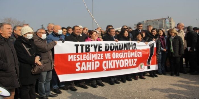 Türk Tabipleri Birliği (TTB) Merkez Konseyi üyelerinin görevden alınmasına dönük açılan davanın ilk duruşması, Ankara Dışkapı Adliyesi’nde başladı. Dayanışma için adliye binası önünde bir araya gelenler, duruşma öncesi açıklama yaptı. “TTB’ye dokunma, mesleğimize, örgütümüze sahip çıkıyoruz” pankartının taşındığı açıklamada, “Susmuyoruz, Korkmuyoruz, İtaat etmiyoruz”, “Kurtuluş Yok Tek Başına Ya Hep Beraber, Ya Hiç Birimiz”, “TTB Susmadı Susmayacak” sloganları atıldı. Açıklamaya, Halkların Demokratik Partisi (HDP) Grup Başkanvekili Meral Danış Beştaş, Êlih Milletvekili Necdet İpekyüz, Cumhuriyet Halk Partisi (CHP) milletvekilleri Sezgin Tanrıkulu ve Ali Şeker ile çok sayıda sivil toplum örgütü temsilcisi katıldı.