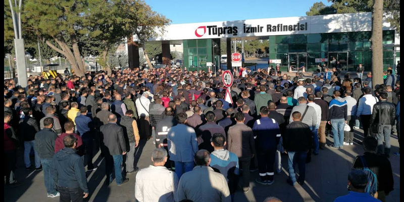 Petrol-İş Sendikası ile TÜPRAŞ Genel Müdürlüğü arasında yürütülen toplu sözleşme görüşmelerinde ilerleme kaydedilememesi üzerine, işçiler üretimi durdurmadan ama fiili olarak tam gün iş yavaşlatma eylemine başladı. İzmir Rafinerisi’nde gece vardiyası çalışmayı sürdürürken, gündüz vardiyası kapıda beklemeye geçti. İşçiler taleplerini yüksek sesle dile getirirken, yönetimin müzakere masasını sürüncemede bırakmasına tepkili.