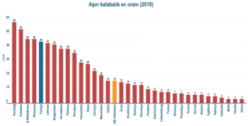 AB İstatistik Ofisi Eurostat verilerine göre Türkiye’de halkın yüzde 43,7’si aşırı kalabalık evlerde kalıyor. Hanede yaşayanlar için yeterli oda yok. Türkiye bu anlamda 34 Avrupa ülkesi içinde 5. sırada yer alıyor. 28 AB ülkesinin ortalaması ise yüzde 16.