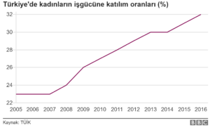 Bu, hem Avrupa Birliği ülkelerine kıyasla hem de Ekonomik İşbirliği ve Kalkınma Örgütü’yle (OECD) karşılaştırıldığında kadın istihdamında en düşük oran.
