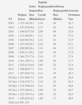 Zaten 2001-2019 döneminde, belli bir yıl içinde her bin nüfus başına düşen canlı doğum sayısını gösteren kaba doğum hızında binde 20,3’ten binde 14,3, belli bir yıl içinde 15-44 yaş grubunda her 1000 kadın başına düşen canlı doğan çocuk sayısını gösteren genel doğurganlık hızında binde 82,7’den binde 63,2’ye geriledi.