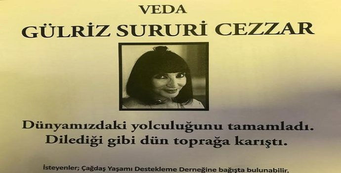 Ünlü oyuncu Gülriz Sururi Cezzar, vasiyetinde dini tören istememiş. Zaten sağlığında sıkı bir ateist olarak bilinen Sururi “öteki dünya”ya inanmadığını, eşi ve sevgilisi Engin’le bir daha asla buluşamayacağını bildiğini, “belki bir testinin kulpunda, yani toprak olarak” bir araya gelebileceklerine dair de bir espri yapmış. Çok tuttum bunu.