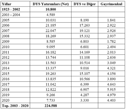 Türkiye’nin 2003 – 2020 yılları arasında çektiği doğrudan yabancı sermaye yatırımı toplamı 224,6 milyar Dolardır. Bu kadar büyük kaynak girişi eğer verimli alanlarda kullanılabilmiş olsaydı bugün Türkiye’nin dış borçlanma gereksinimi de cari açığı da çok daha düşük olacaktı. Türkiye 2003 – 2020 yılları arasında Cumhuriyet’in toplam 15,4 milyar dolar doğrudan yabancı sermaye kullanarak yarattığı tesisleri toplam 63 milyar dolara özelleştirmiş olmasına karşılık elde ettiği bu büyük kaynakları verimsiz alanlarda kullandığı için bugün hala yüksek dış borçlanmaya mahkûm bulunuyor.