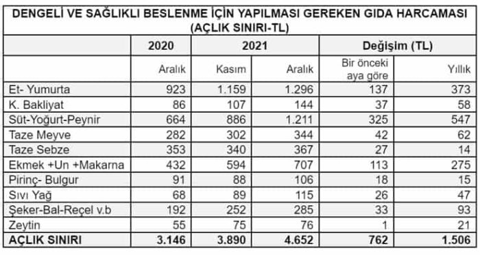 Aralık 2020’de açlık sınırı 3 bin 146 lira ölçülmüştü. Sınırın bir yılda tam 1506 lira artması dikkat çekti.