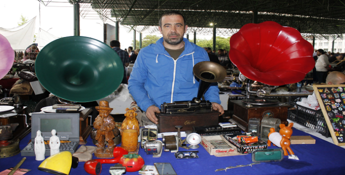 İlk durağım antika pazarlarının vazgeçilmezlerinden olan gramofonlar. Renk renk gramofonların fiyatları el yakıyor. Sorduğum bir gramofonun fiyatı Bin 500 TL…