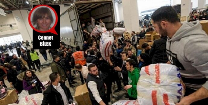 Yardım malzemelerini, pişirdikleri yemekleri depremzedelere ulaştırırken o kadar nazik, o kadar saygılıydılar ki onların her birini kucaklamak iyi ki varsınız demek istedim. Buz gibi havada hiç sızlanmadan, politik polemiklere girmeden depremzedelerle empati kurdular, taşın altına ellerini sokmaktan gocunmadılar, bunun adı öz veri değil de nedir?