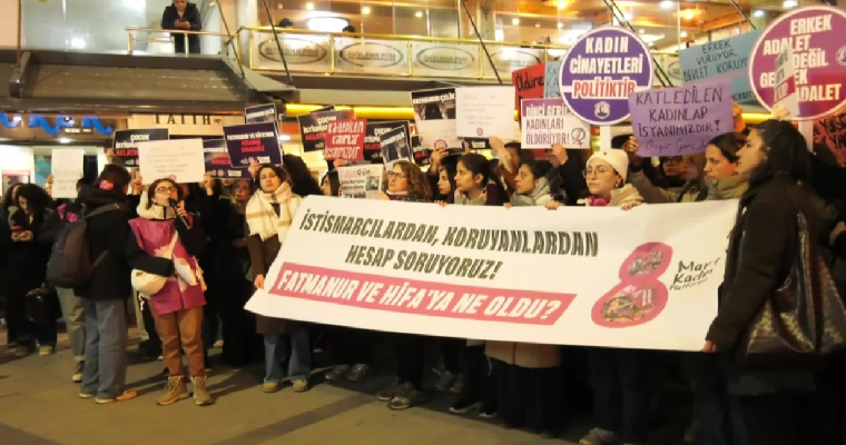8 Mart Kadın Platformu, anne ve kızın cansız bedenlerinin bulunduğu İstanbul’un Zeytinburnu ilçesinde yürüyüş ve basın açıklaması düzenledi. Platform, aylardır kamuoyuna yaptığı çağrılarda can güvenliği tehdidi altında olduğunu söyleyen Fatma Nur Çelik’in korunmadığını savunarak, ilgili bakanlıklar ve yargı makamlarına “ihmal” ve “koruma zafiyeti” suçlamasında bulundu.